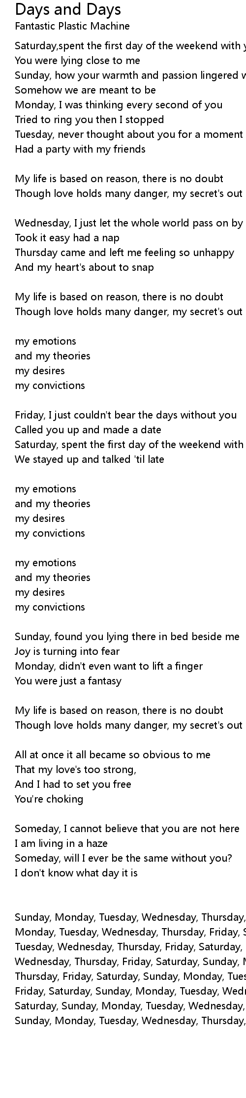Friday, I just couldn't bear the days without you |