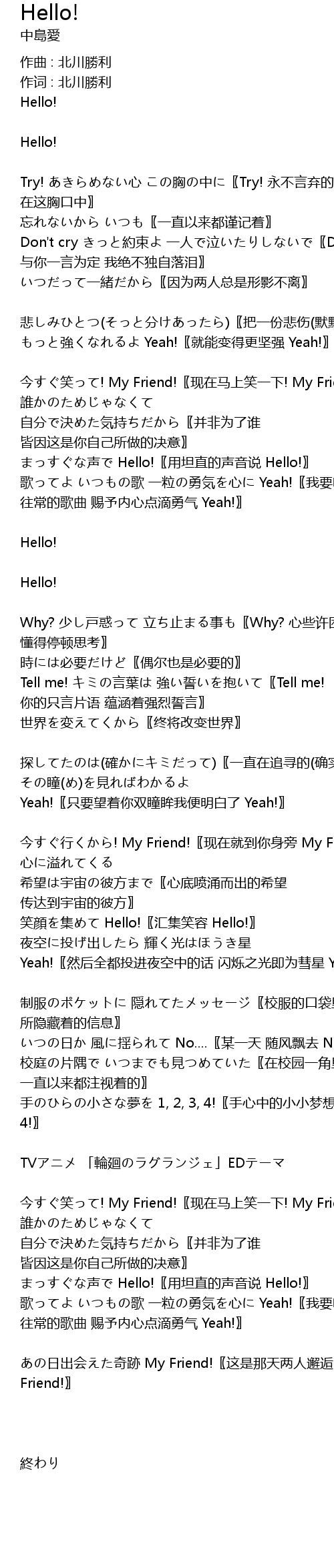 | 今すぐ笑って! My Friend!〖现在马上笑一下! My Friend!〗 | |