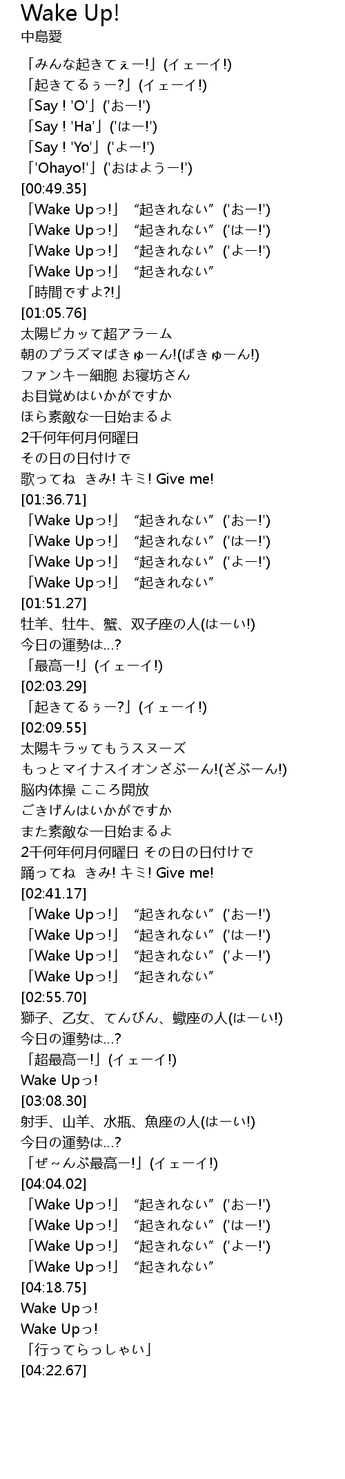 | [00:58.18] | 「Wake Upっ!」“起きれない”('よー!') |