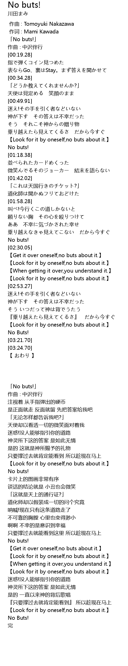 | [03:19.45] | No Buts! |