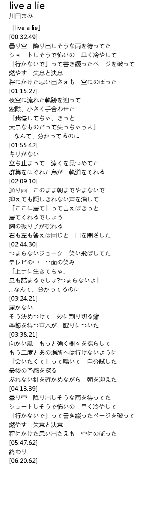 | [05:26.25] | 「行かないで」って書き綴ったページを破って |