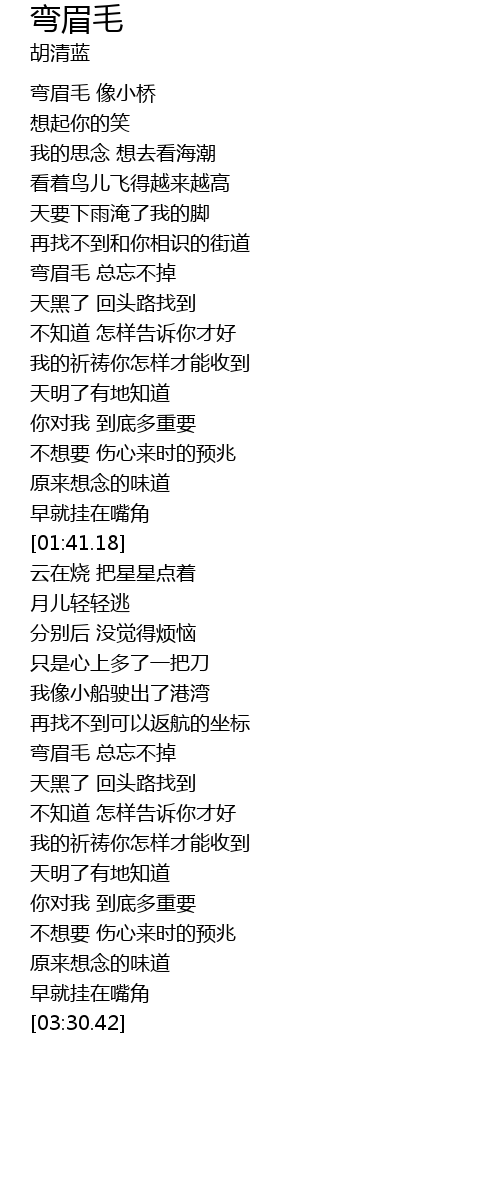 | [00:47.29] | 弯眉毛 总忘不掉 |