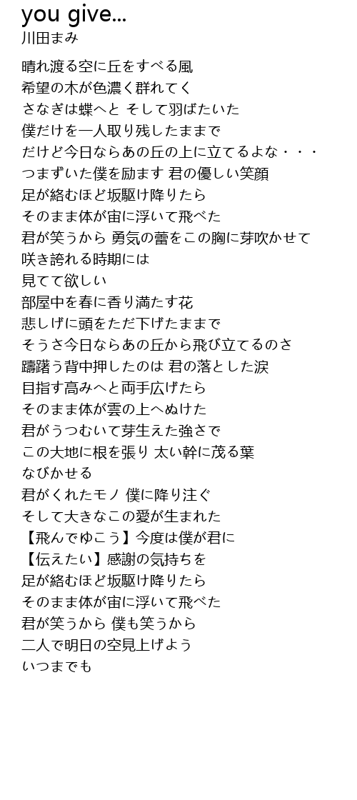 | そうさ今日ならあの丘から飛び立てるのさ | |