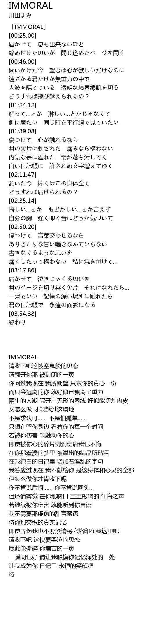| [00:00.00] | 「IMMORAL」 |
