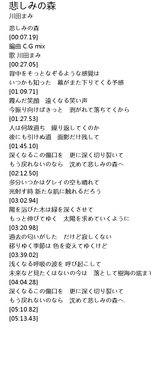 | [00:04.14] | 悲しみの森 |
