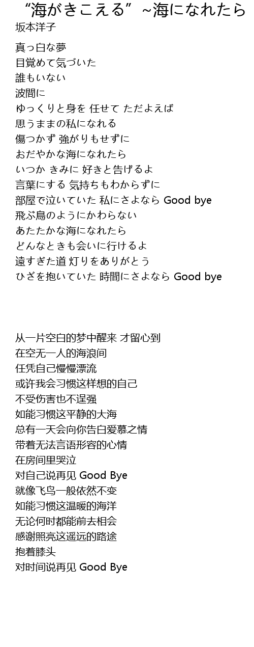 | Song | “海がきこえる”~海になれたら |