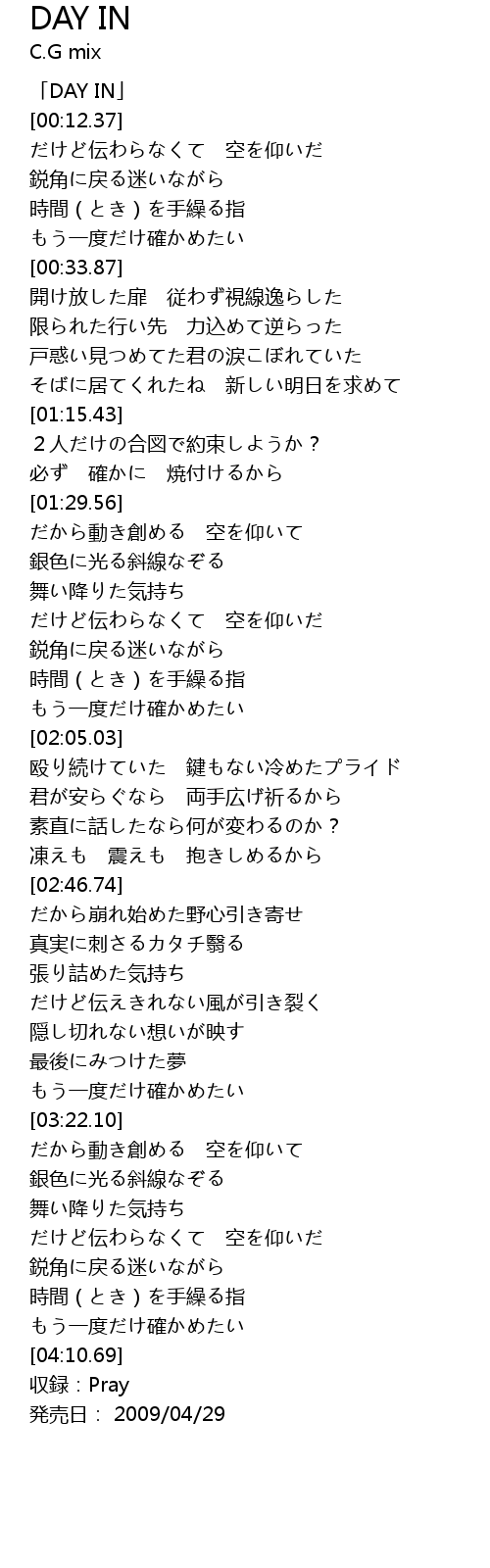 | [04:13.69] | 収録:Pray |
