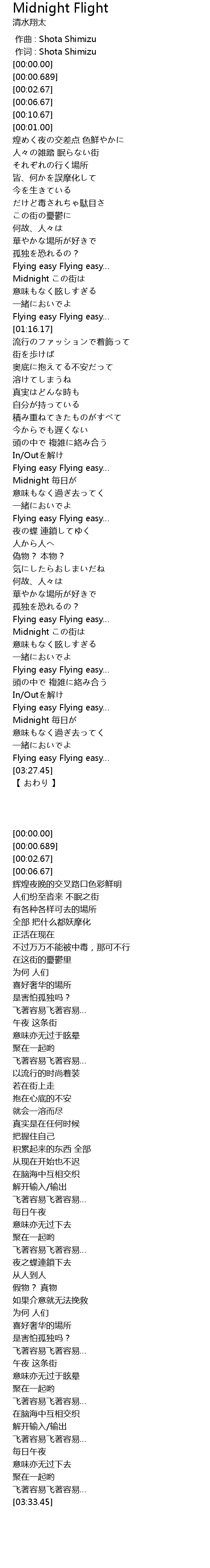 | [00:00.00] | zuo ci : Shota Shimizu |