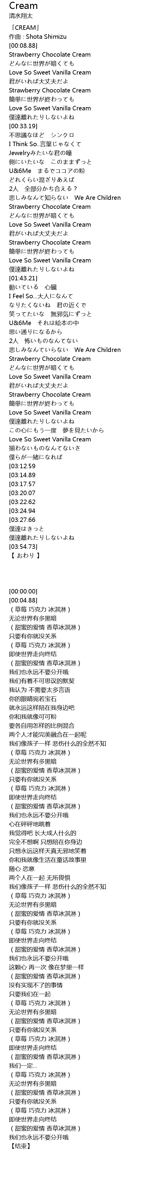 | [03:42.84][03:22.62] | Strawberry Chocolate Cream |