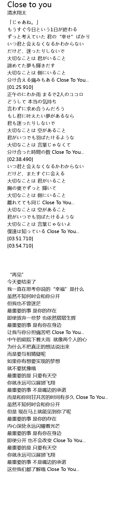 | [02:30.440] | fen he shi jian shu Close To You... |