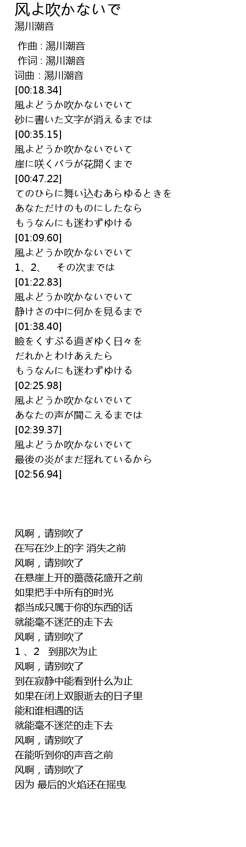 | [02:39.91] | 風よどうか吹かないでいて |