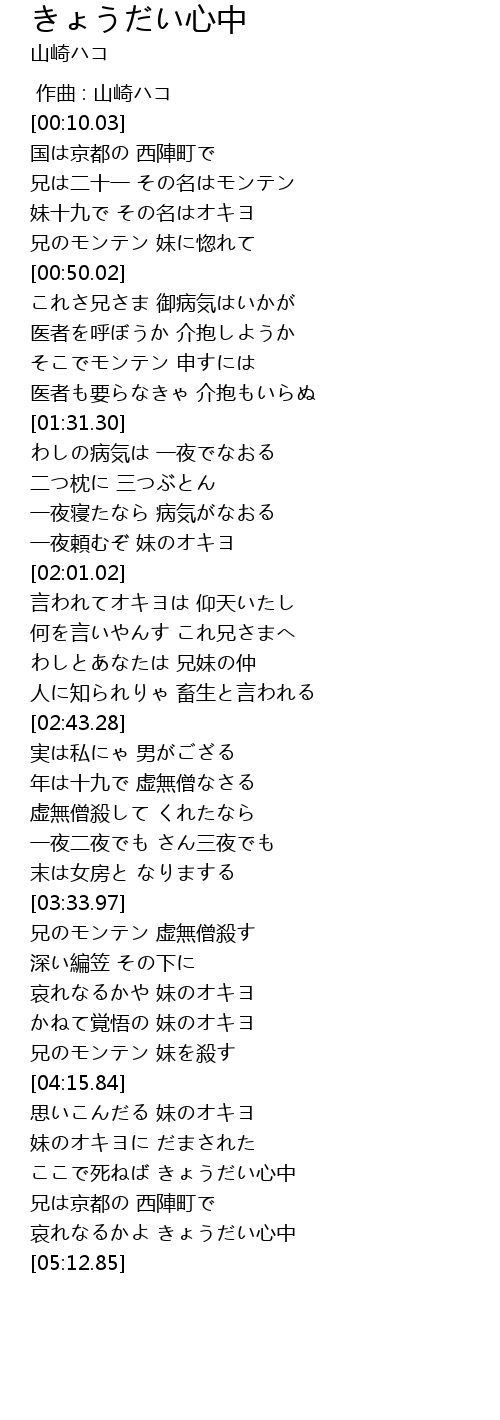 | [05:02.62] | 哀れなるかよ きょうだい心中 |