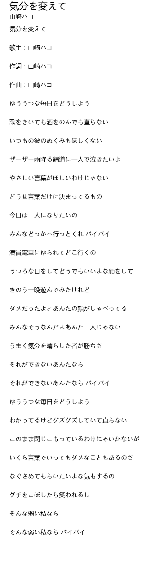 | ザーザー雨降る舗道に一人で泣きたいよ | |