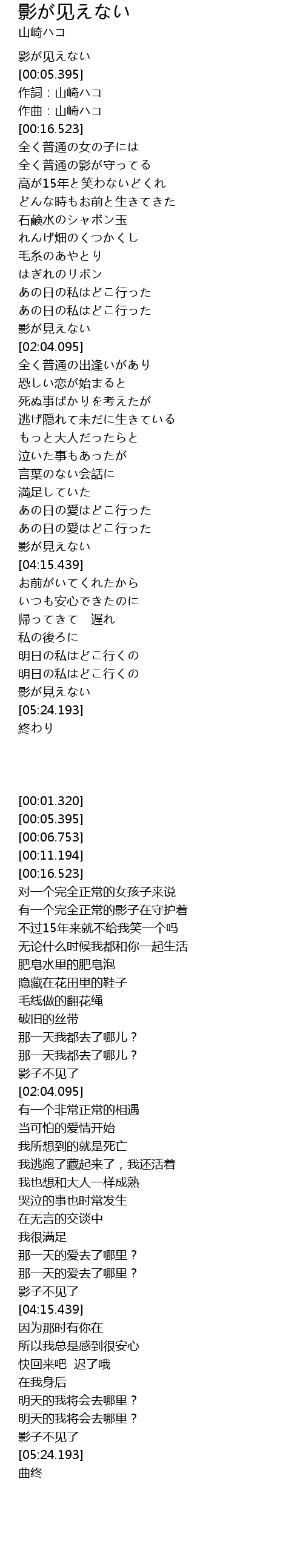 作詞:山崎ハコ |