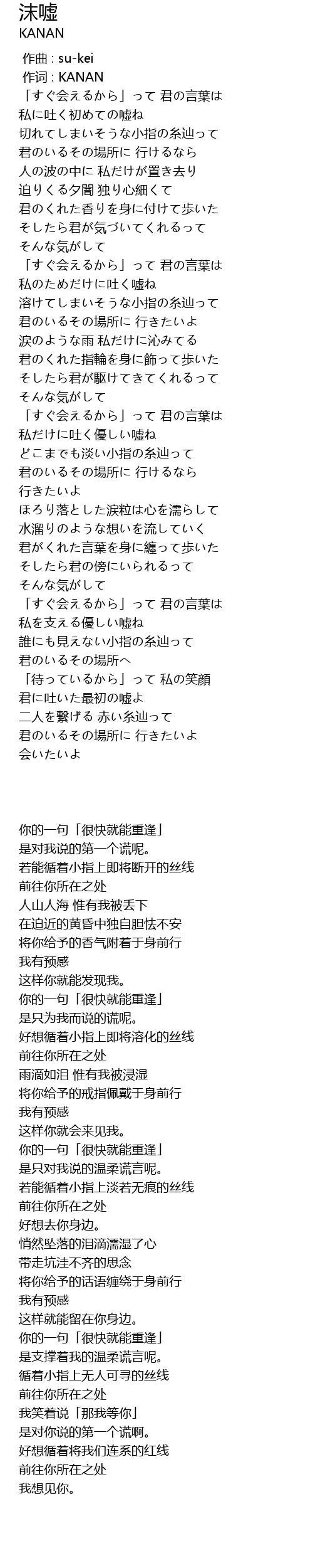 | [00:05.650] | 私に吐く初めての嘘ね |