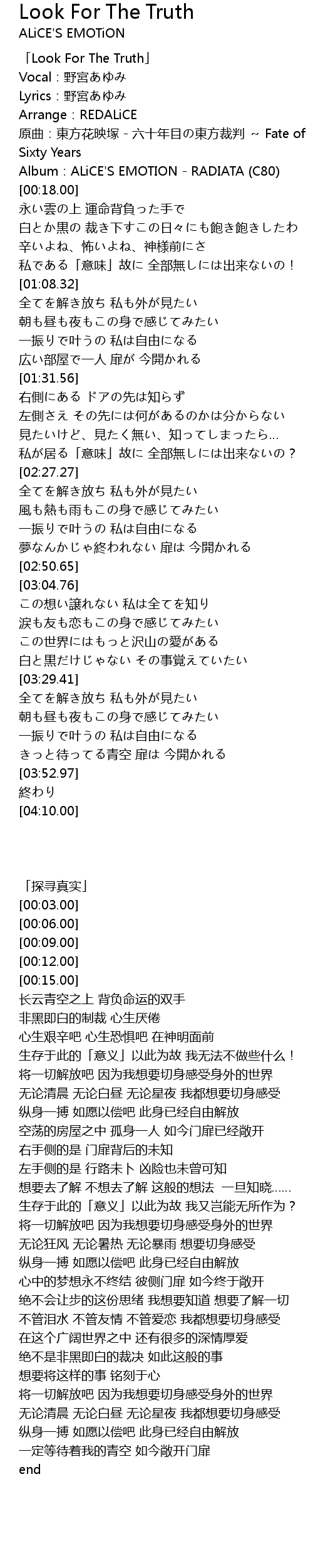 | [00:12.00] | 原曲:東方花映塚 - 六十年目の東方裁判 ~ Fate of Sixty Years |