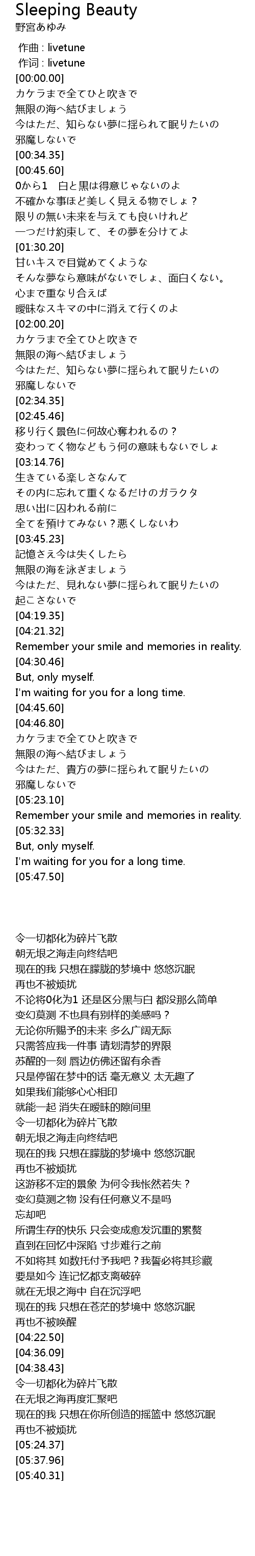 | [05:24.37] | Remember your smile and memories in reality. |