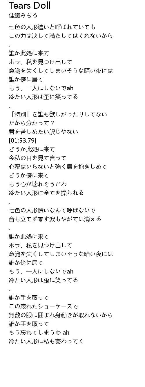 | [01:14.06] | 冷たい人形は歪に笑ってる |