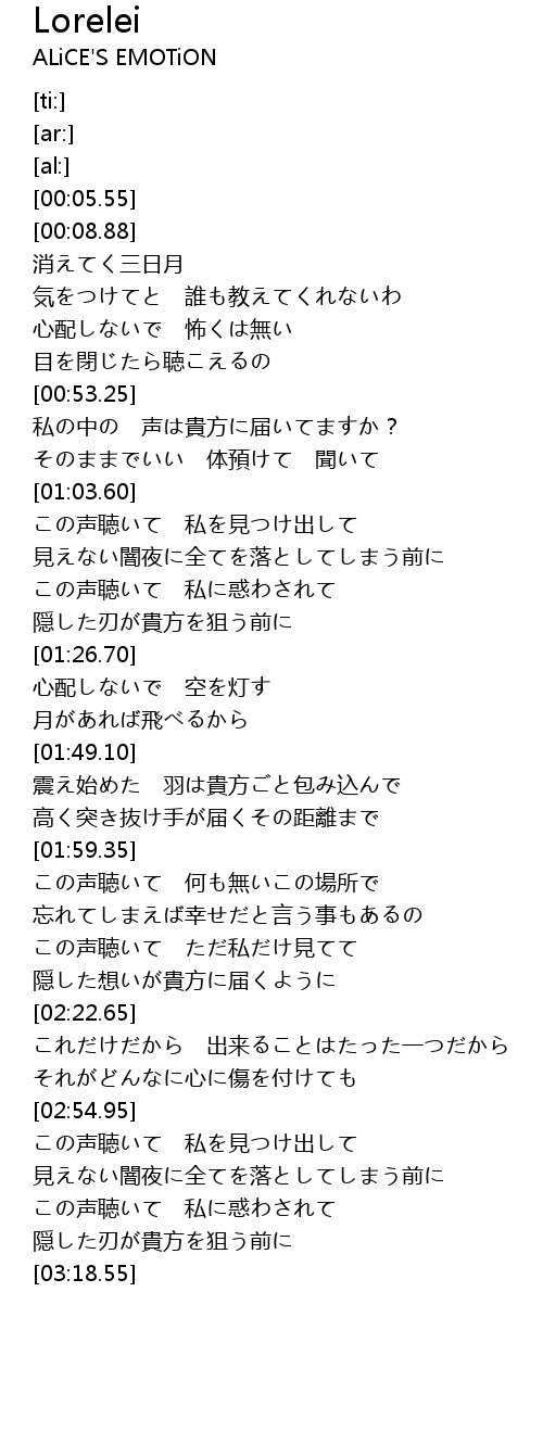 | [03:07.35] | この声聴いて 私に惑わされて |
