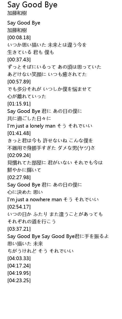 | [01:16.38] | Say Good Bye 君に あの日の僕に |