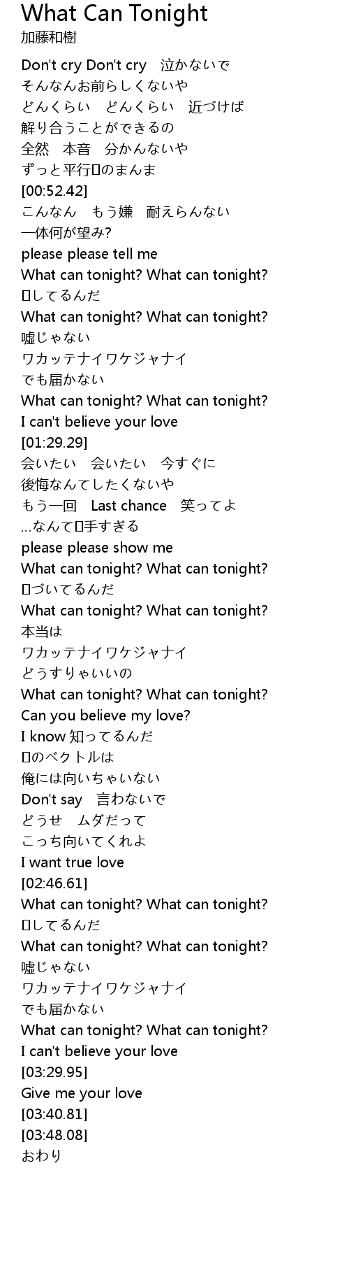 | [00:53.72] | こんなん もう嫌 耐えらんない |