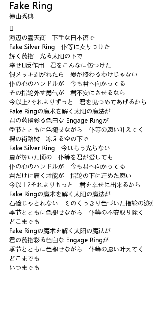 | Fake Silver Ring 今はもう光らない | |