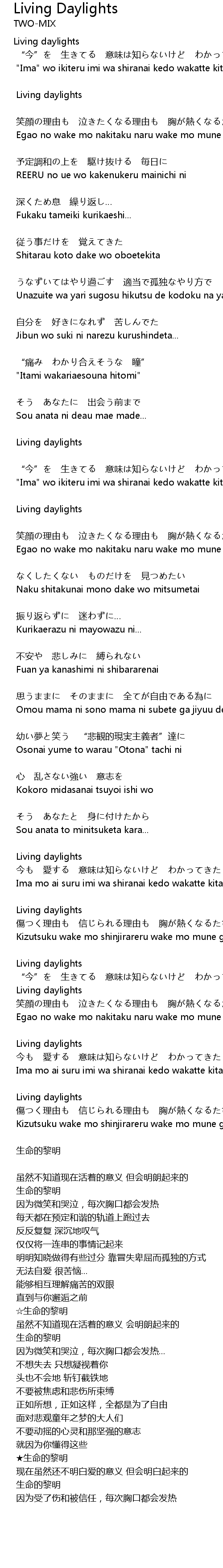 | “今”を 生きてる 意味は知らないけど わかってきた | |