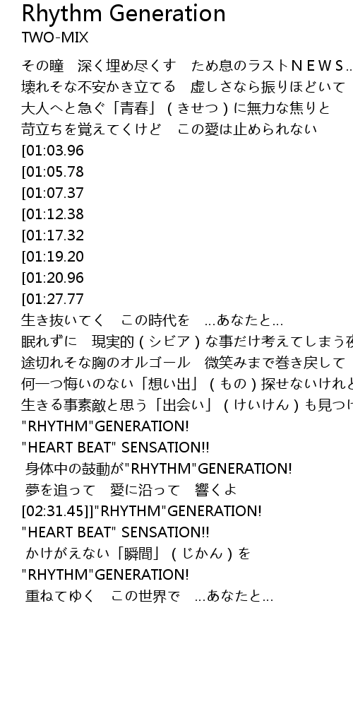 | [02:31.45]] | "RHYTHM"GENERATION! |