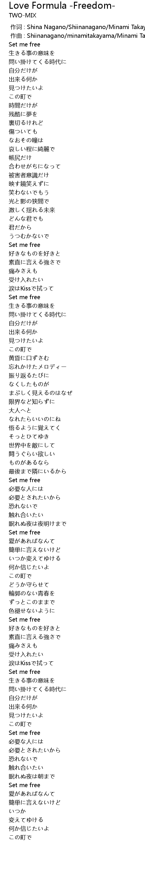 | [00:00.000] | zuò cí : Shina Nagano Shiinanagano Minami Takayama |