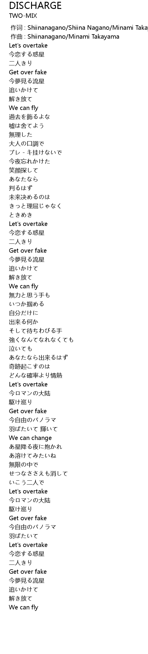 | [00:01.000] | zuo qu : Shiinanagano Minami Takayama |