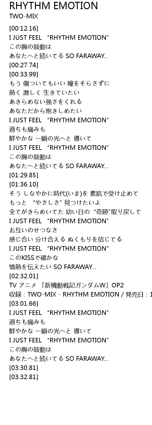 | [03:03.66] | I JUST FEEL " RHYTHM EMOTION" |