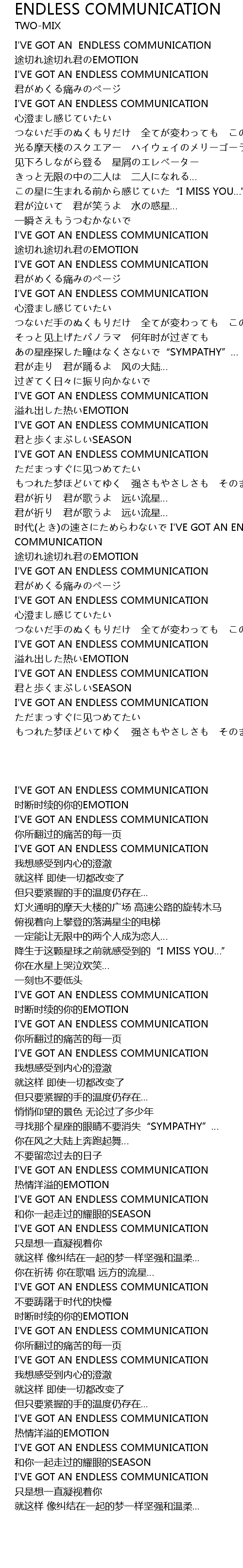 | [03:08.300] | I'VE GOT AN ENDLESS COMMUNICATION |