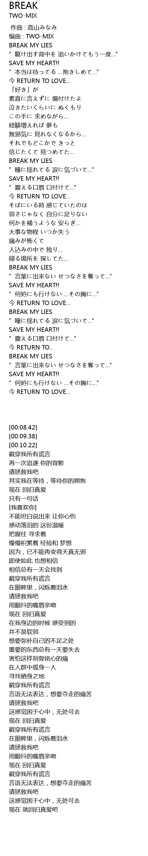 | [02:22.31] | BREAK MY LIES |