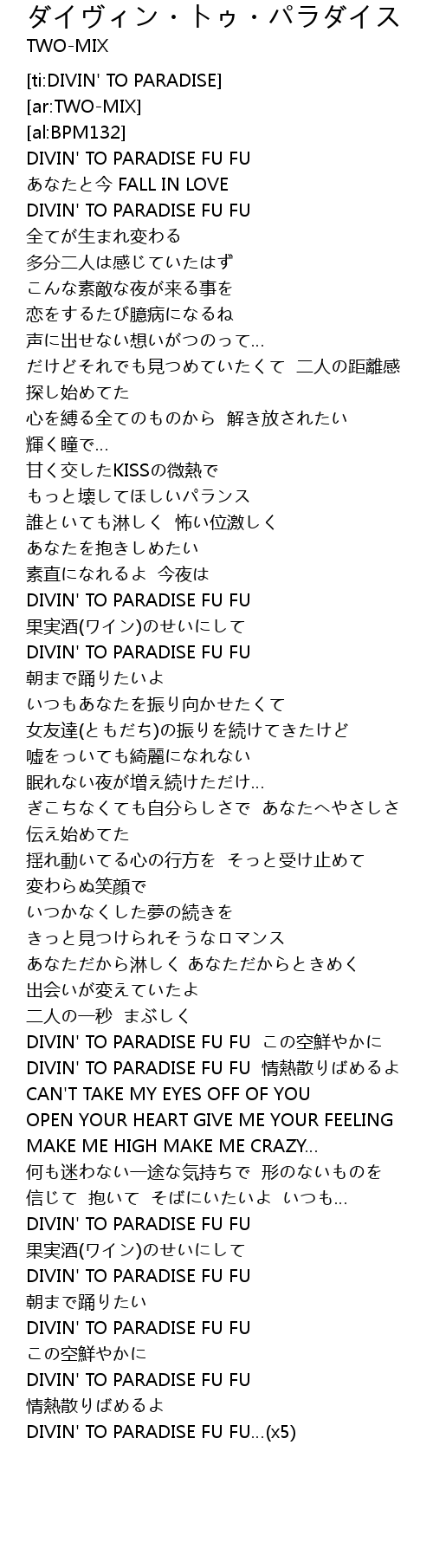 | [04:18.00] | DIVIN' TO PARADISE FU FU…(x5) |