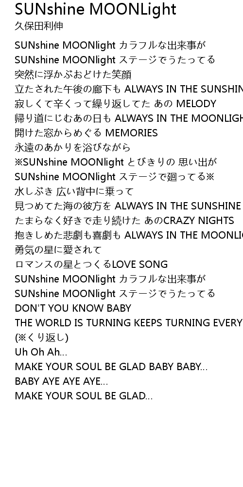 | Song | SUNshine MOONLight |