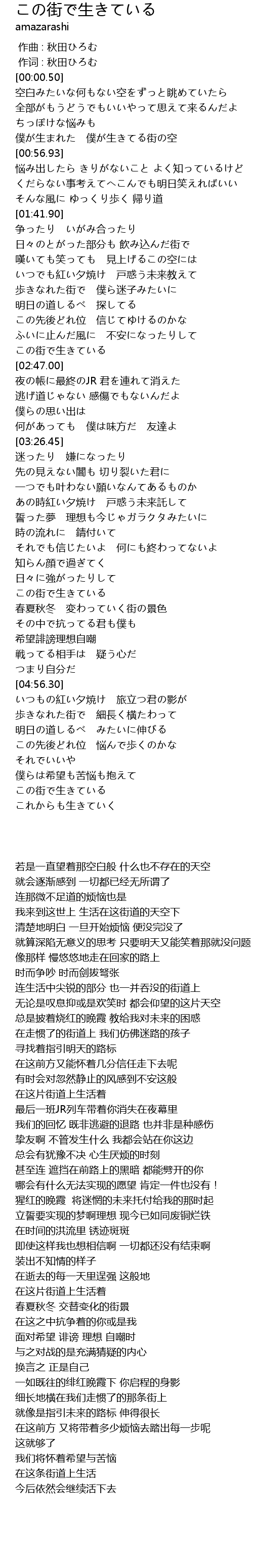 | [05:09.08] | 歩きなれた街で 細長く横たわって |