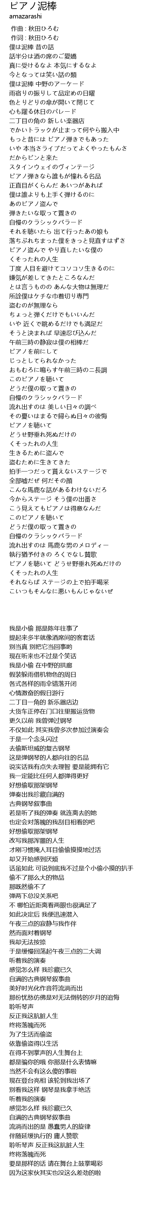 | [04:18.750] | ピアノを聴いて どうせ野垂れ死ぬだけの |