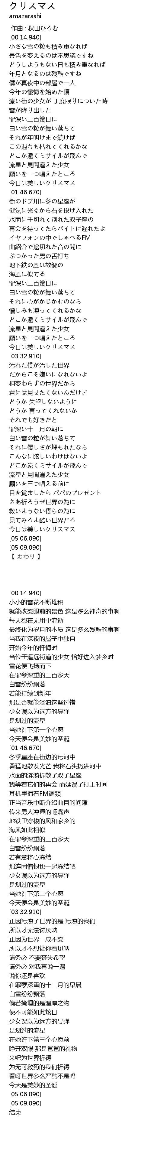 | [03:03.000] | 白い雪の粒が舞い落ちて |