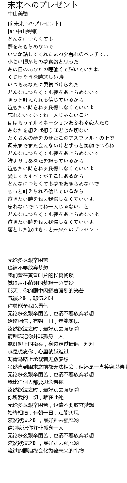 [ti:未来ヘのプレゼント] |
