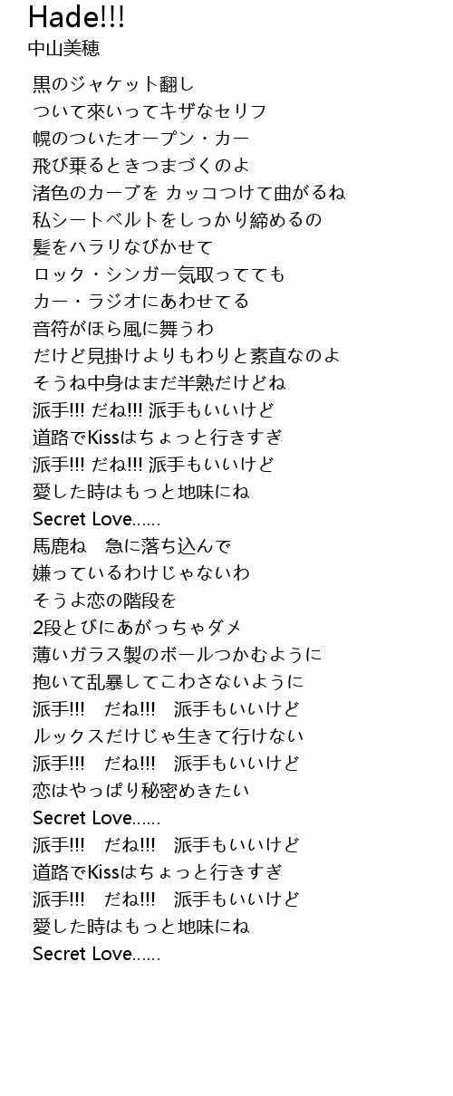 | [02:43.942] | 恋はやっぱり秘密めきたい |