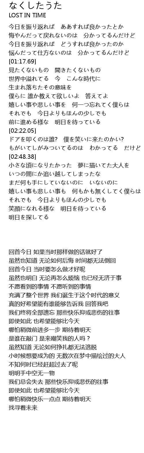 | [03:51.68] | 嬉しい事も悲しい事も 何もかも無くしてく僕らは |