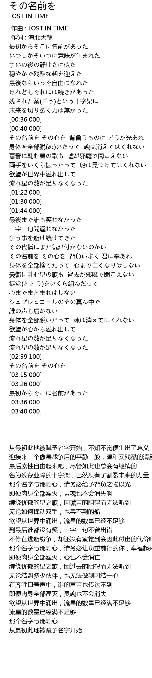 | [00:01.000] | 最初からそこに名前があった いつしかそいつに意味が生まれた |