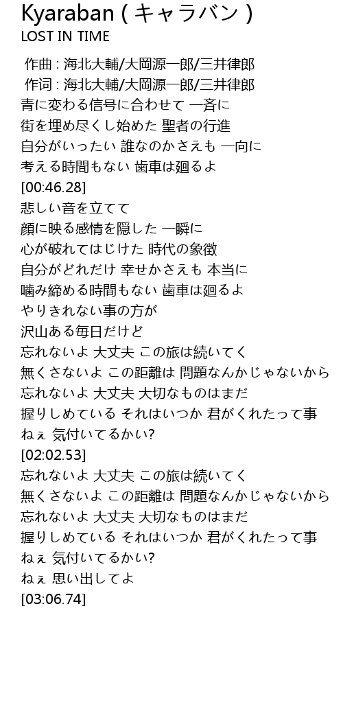 | [00:01.000] | 作词 : 海北大輔/大岡源一郎/三井律郎 |