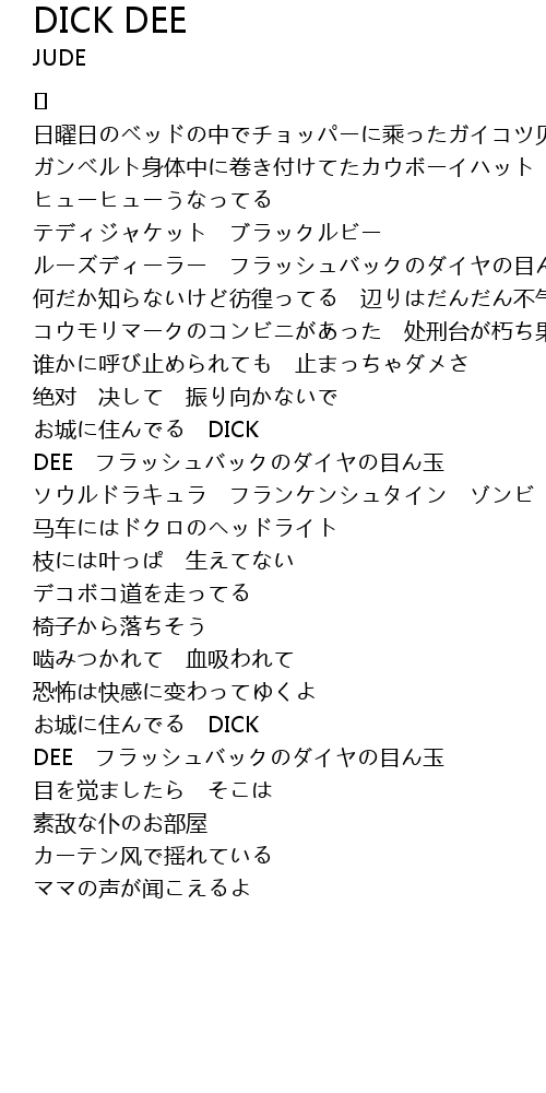 | お城に住んでる DICK DEE フラッシュバックのダイヤの目ん玉 | |