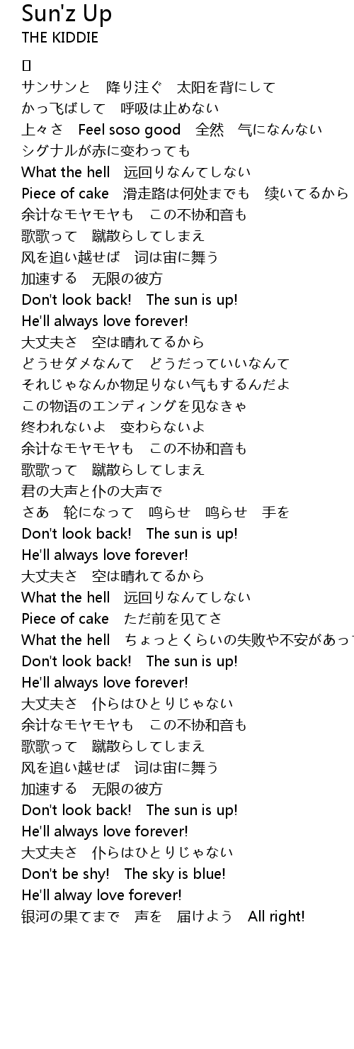 | Song | Sun'z Up |