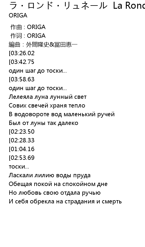 | [04:44.77][02:53.69][02:51.74][01:26.39][01:24.47] | один шаг до тоски... |