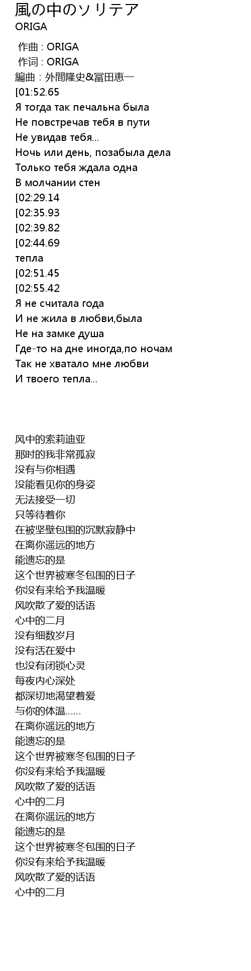 | [00:01.00] | 作词 : ORIGA |