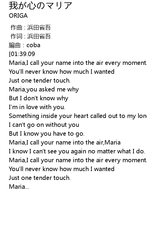 | [01:26.55] | Maria, I call your name into the air, Maria |