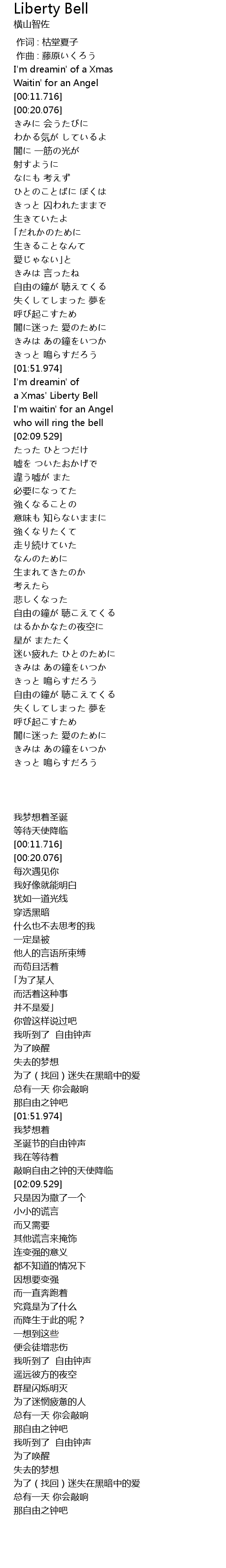 | [02:59.292] | 自由の鐘が 聴こえてくる |