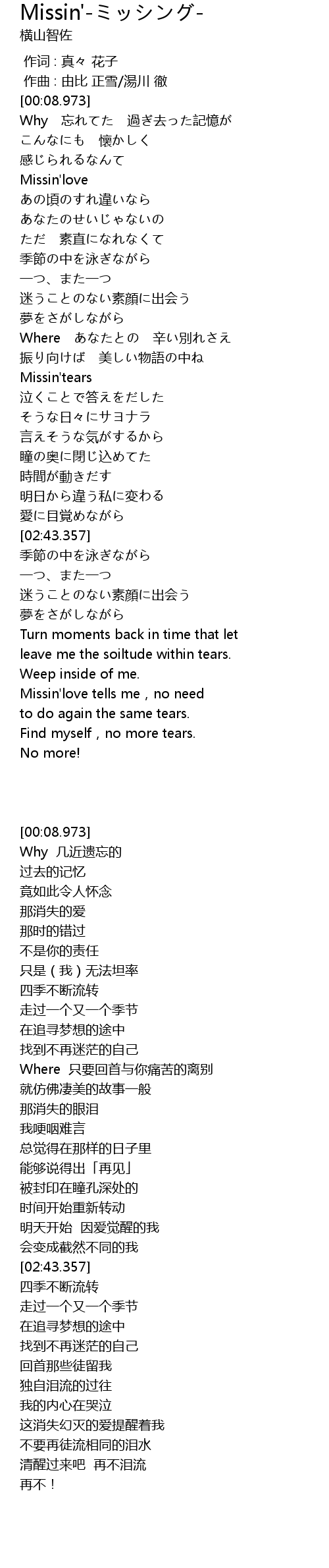 | [01:54.430] | Missin'tears |